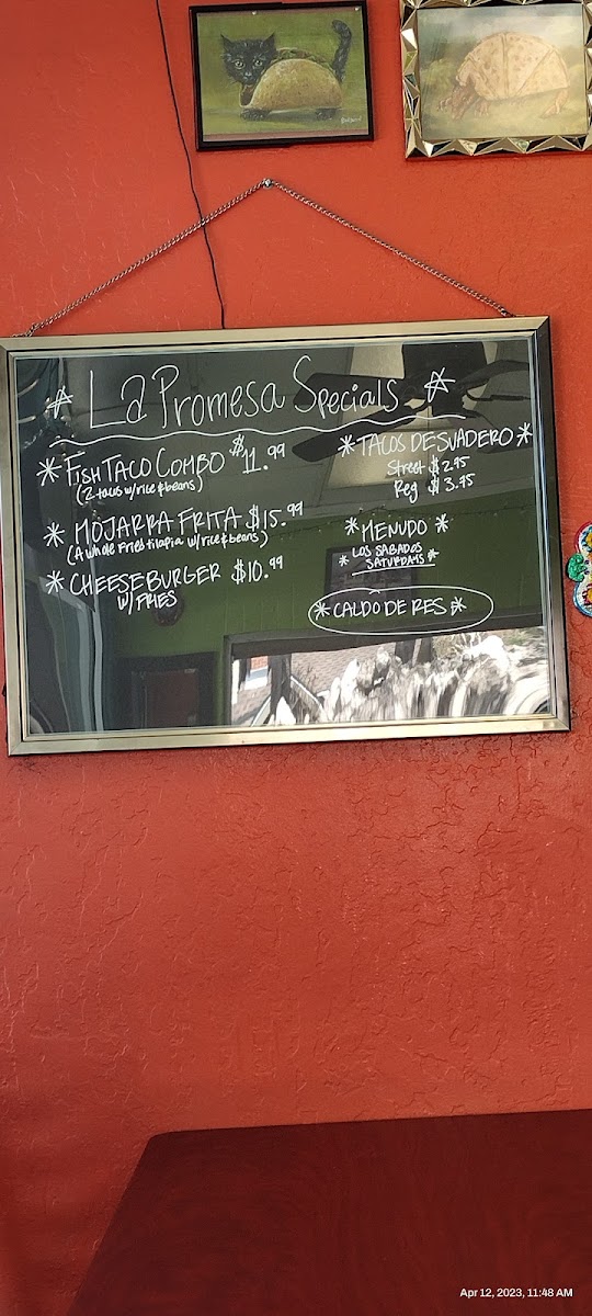 The menu at La Promesa reflects a relaxed, approachable style that highlights the best of traditional Mexican flavors in a casual setting. You’ll find comforting, familiar dishes that suit any time of day—whether you’re stopping by for a hearty breakfast burrito, sharing Super Nachos during a laid-back lunch, or unwinding with a flavorful wet burrito for dinner.